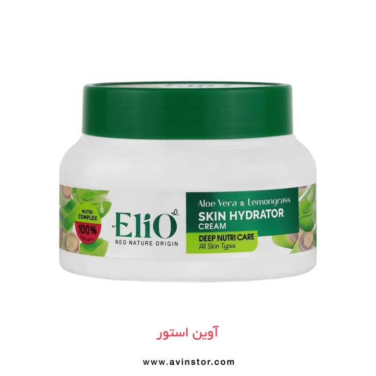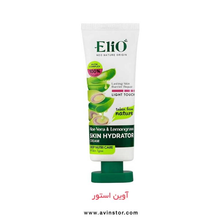 کرم مرطوب کننده تیوپی حاوی عصاره آلو ئه ورا و علف لیمو الیوElio aloe vera and lemongrass skin hydrator cream