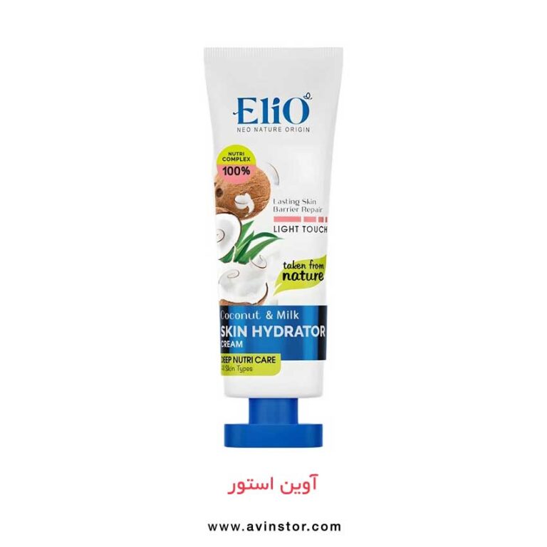کرم مرطوب کننده تیوپی حاوی روغن نارگیل و شیر الیو Elio coconut and milk skin hydrator cream